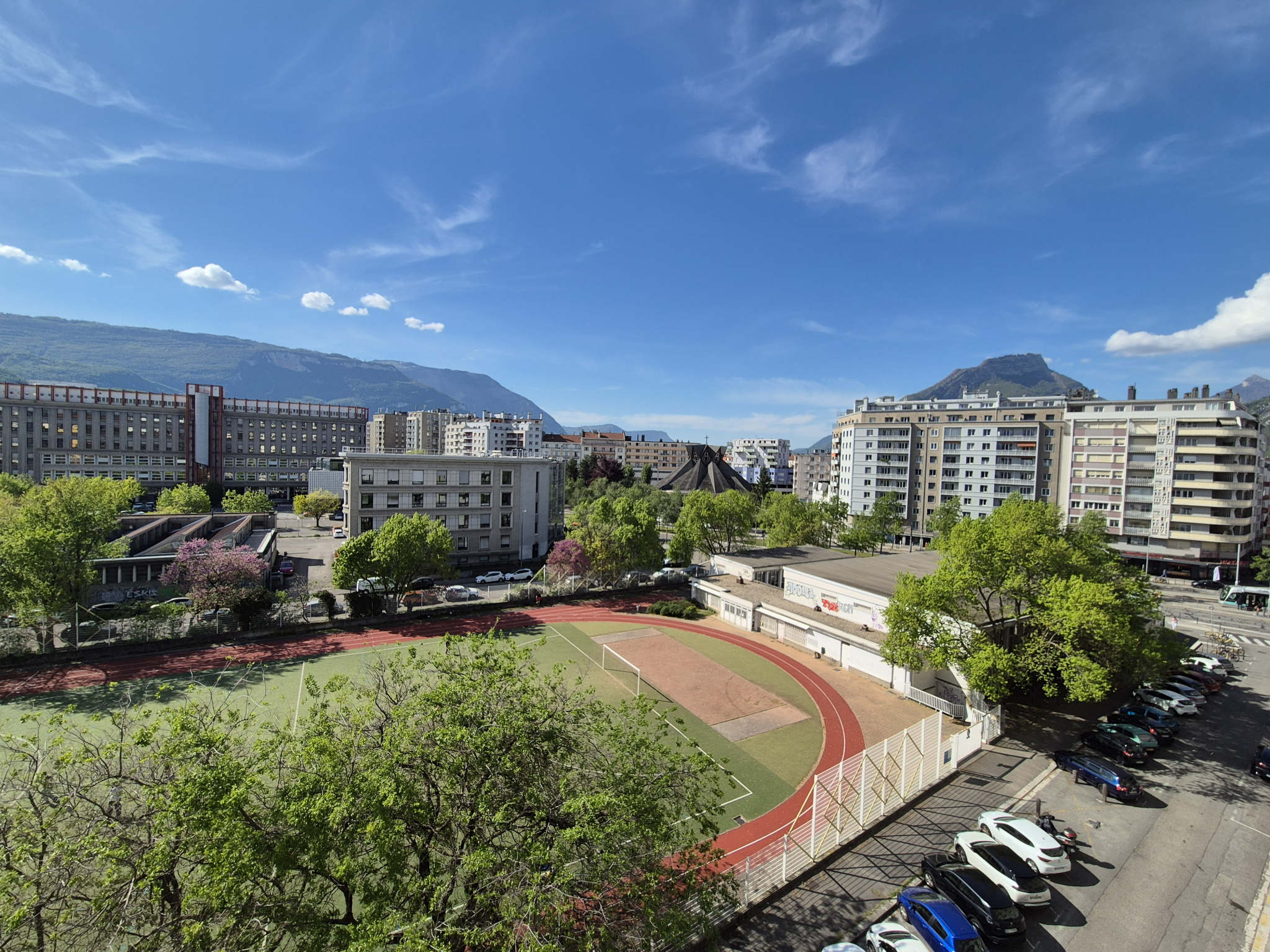 GRENOBLE, 11 rue Louis le Cardonnel, proche Tram C et E arret Vallier Liberation, au 5ème étage avec ascenseur, lumineux T2 meublé de 34m² avec vue dégagée sur le Vercors exposition Ouest, rénové récemment.
