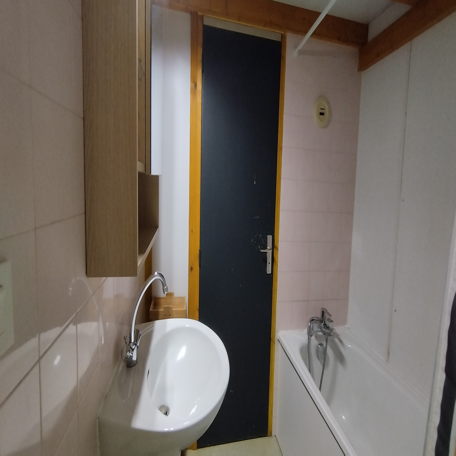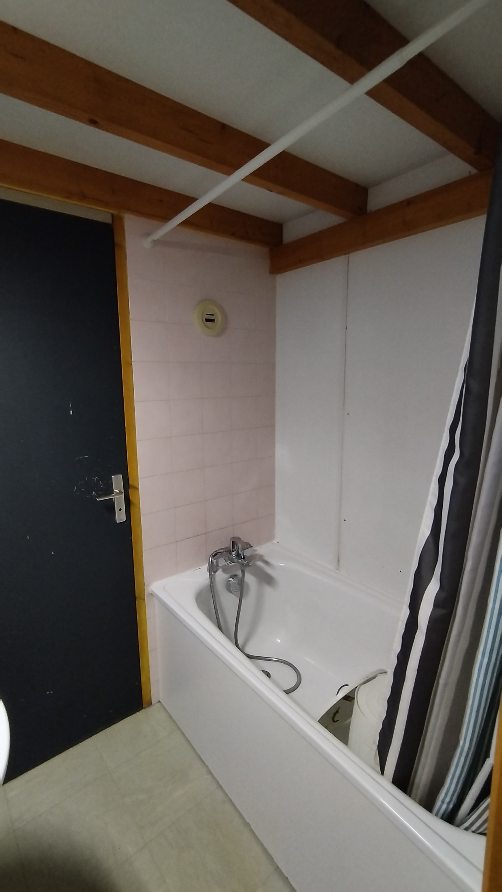 Il se compose d'un séjour, d'une kitchenette, d'une mezzanine pour le coin nuit, une salle de bain avec baignoire et un WC séparé.