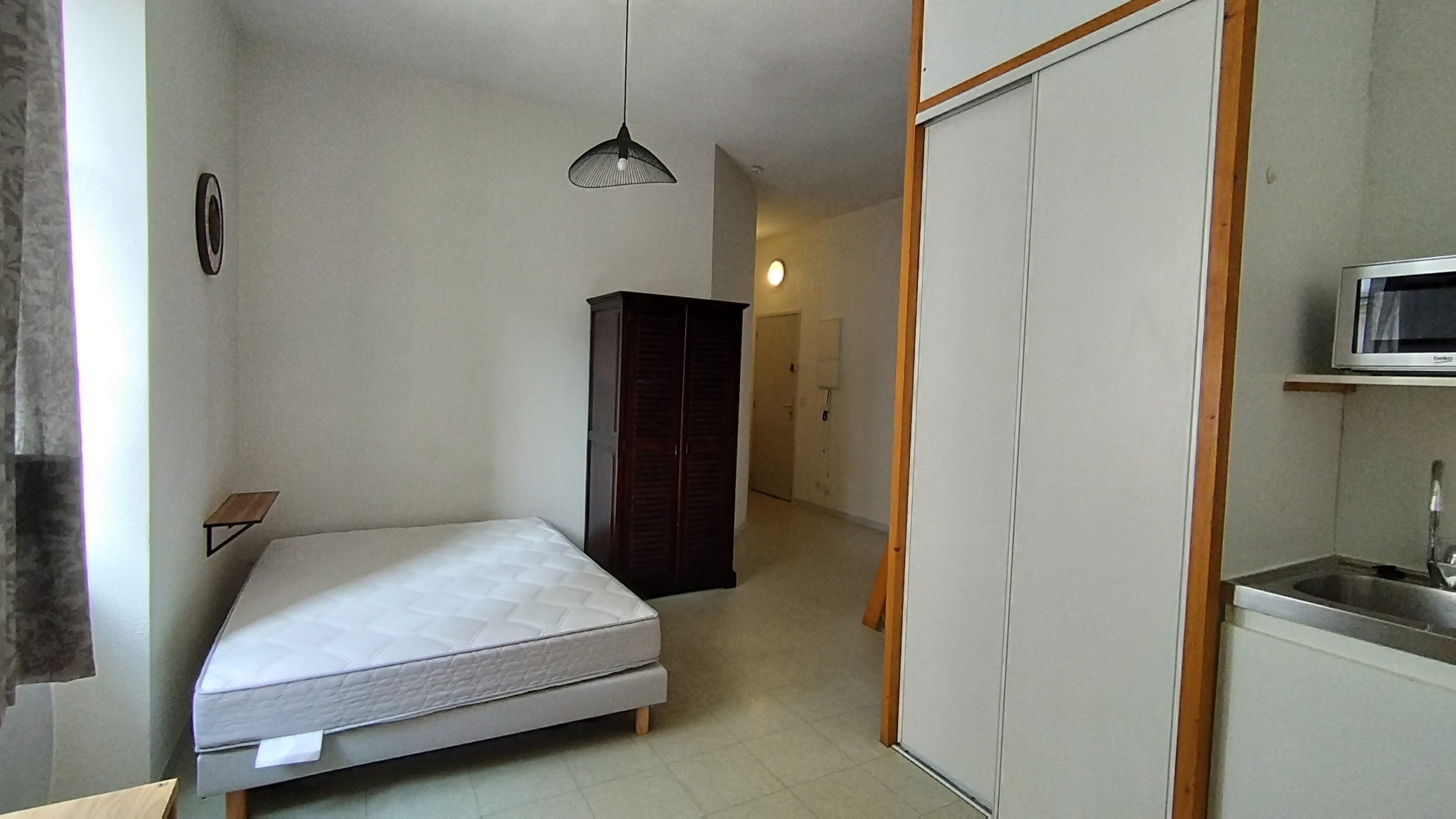 Nombreux rangement et studio lumineux. Local vélo dans la résidence.