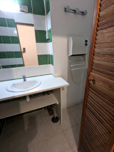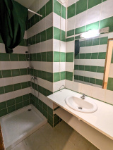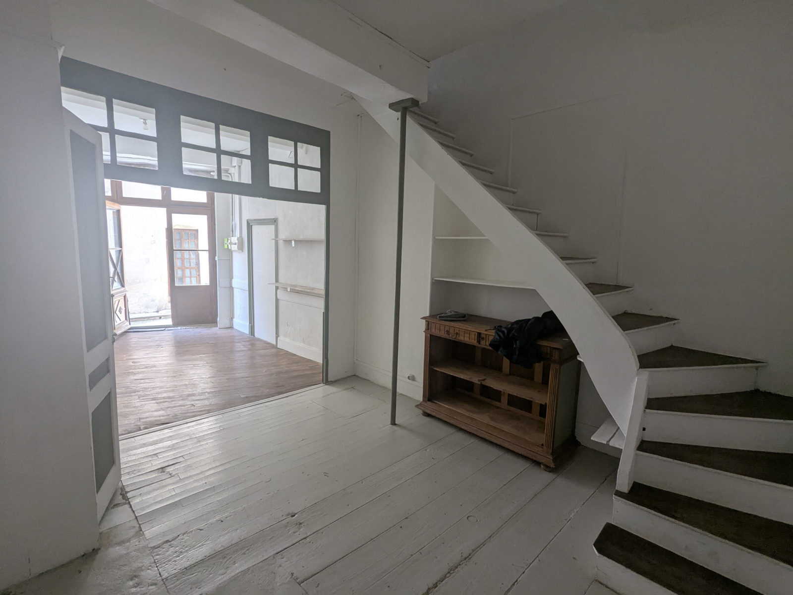 Au premier étage, accessible depuis le local, se trouve un appartement de type T1 bis proposant une pièce de vie avec cuisine américaine de 22,42 m2, et un coin nuit avec salle d'eau attenant de 10,37 m2.