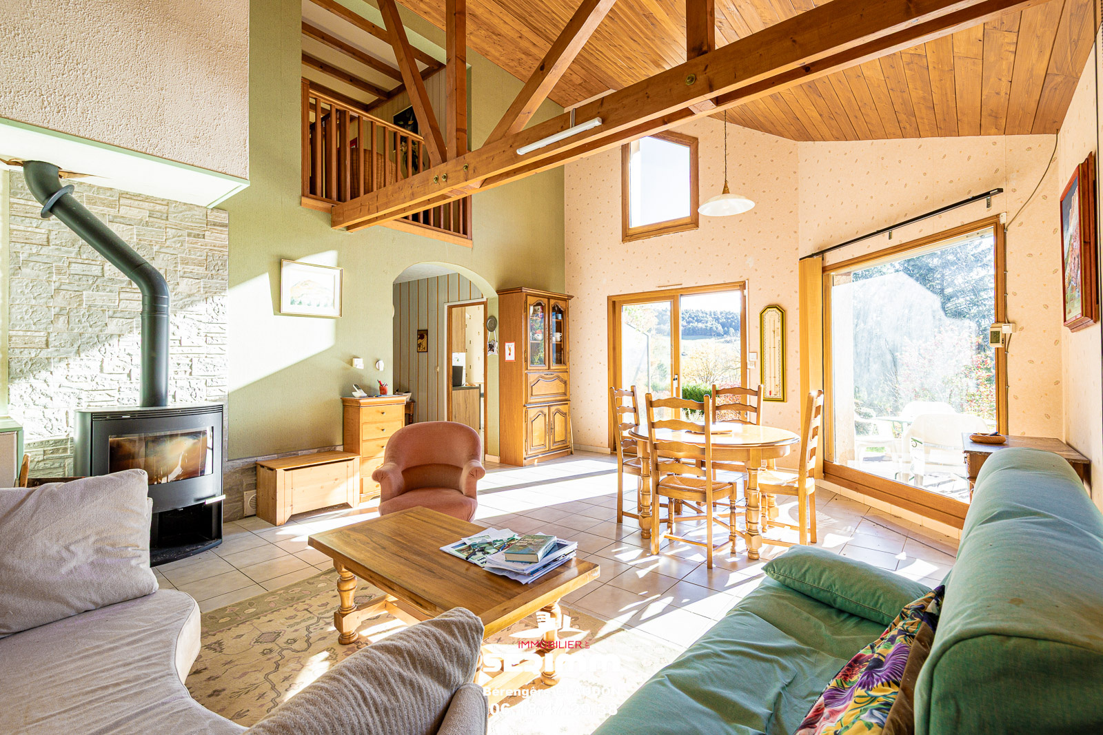 Construite en 1988, elle offre une belle pièce de vie type séjour cathédrale avec poêle à bois neuf, chauffage au sol et cuisine neuve toute équipée ouvrant sur une terrasse en bois. Triple vitrage bois, volets motorisés.